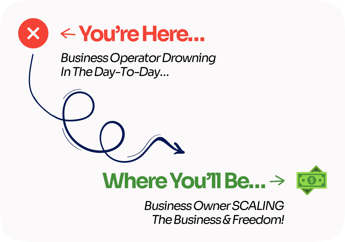 Follow a clear roadmap designed to move you from “stuck in the weeds” to scaling with systems, leaders, and freedom in a 6 month timeframe.